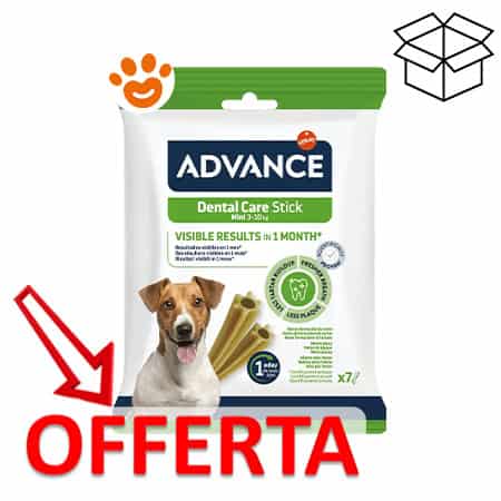 Advance Dental Care Stick Mini è uno snack funzionale pensato per l’igiene orale quotidiana dei cani di piccola taglia (3–10 kg). Grazie alla sua speciale forma e composizione, aiuta a ridurre la formazione di placca e tartaro, contribuendo a mantenere denti puliti e gengive sane. Con risultati visibili in un mese, è un alleato gustoso per la salute dentale.