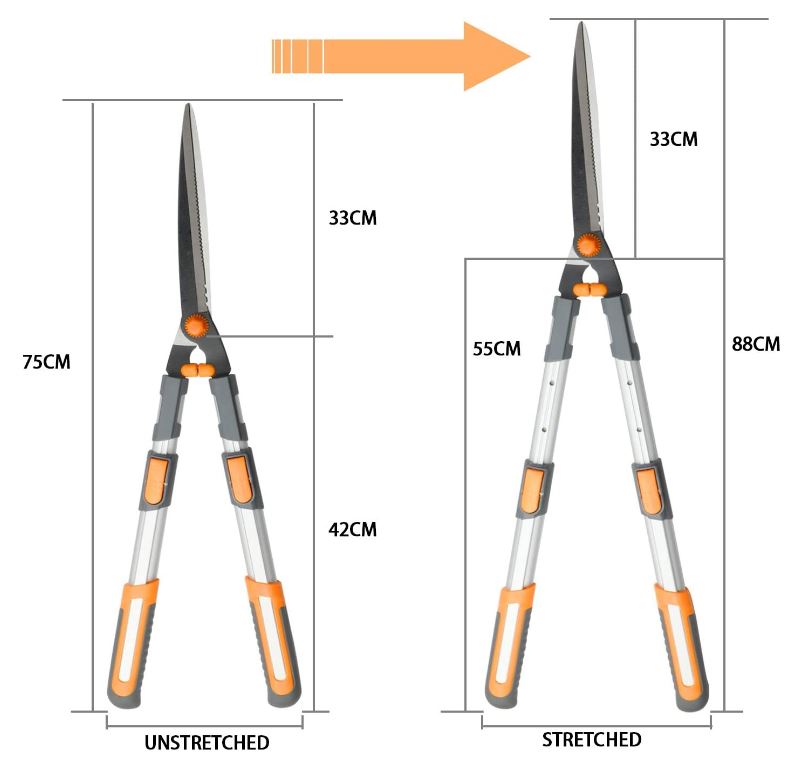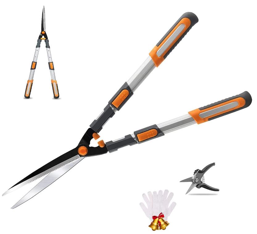 AIRAJ Cesoia da Siepi Telescopico Manuale 75-88CM + Gratis Guanti e Forbici