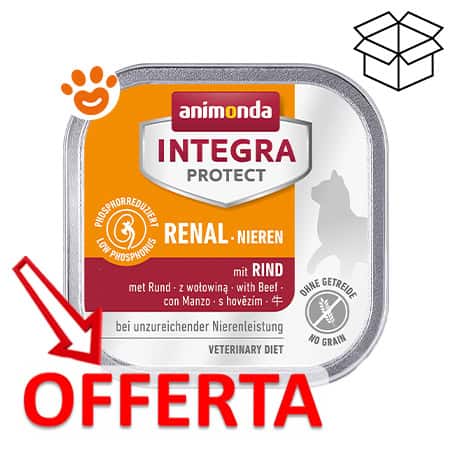 INTEGRA PROTECT Renal con Manzo è un alimento umido dietetico completo, sviluppato dai veterinari per supportare i gatti affetti da insufficienza renale cronica. Grazie al suo basso contenuto di fosforo, aiuta a preservare la funzionalità del tessuto renale residuo e a rallentare il decorso della malattia.