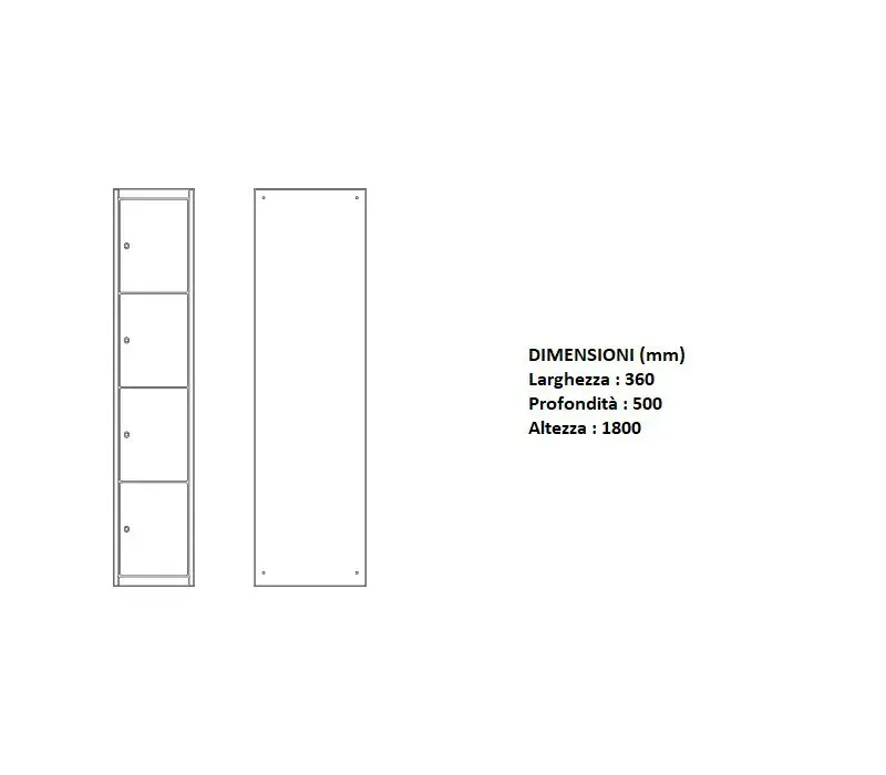 – 1 POSTO (mm) : 360X500X1800