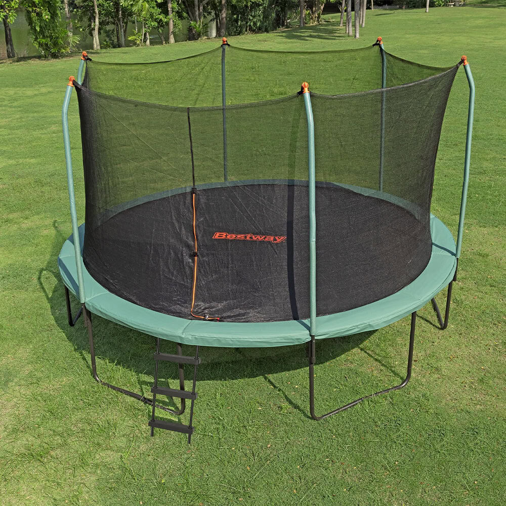 Regala ai tuoi bambini ore di risate e divertimento nel comfort del vostro giardino con il tappeto elastico Bestway® Xtreme Air™. Duraturo e resistente, questo ampio tappeto elastico da 4,27 m è perfetto per i bambini dai 6 anni in su, e include una rete di protezione cucita al tappeto stesso, con un ingresso con cerniera e fibbia e pali di sostegno con imbottiture in schiuma, così da essere tanto sicuro quanto divertente da usare.
