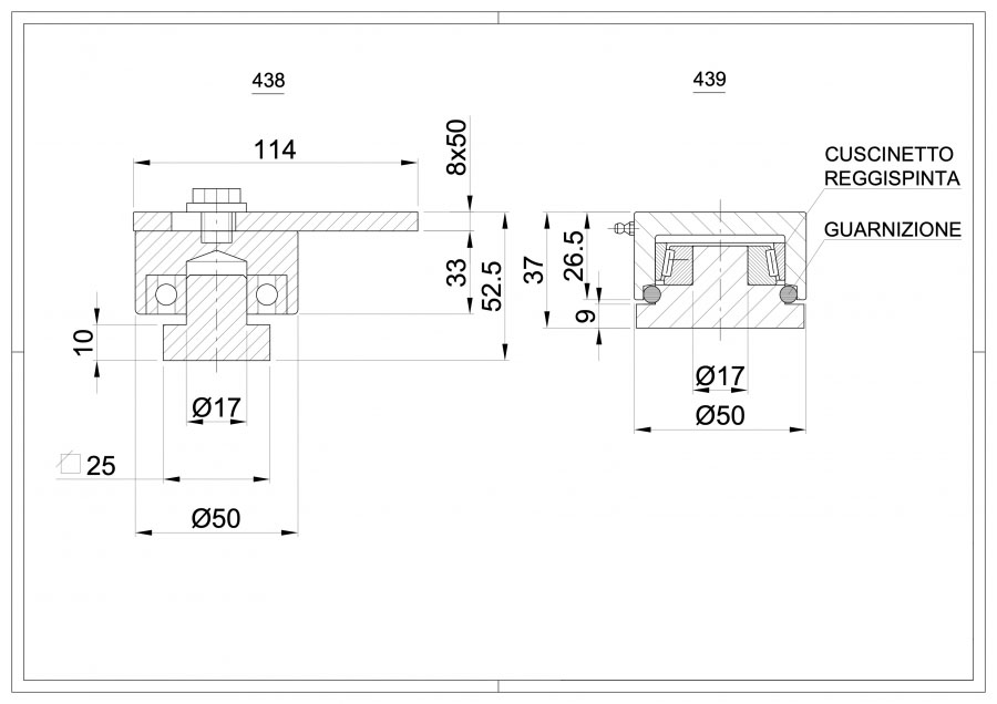 Cardine regolabile con piastra girevole, cuscinetto regispinta e ingrassatore in ferro zincato.