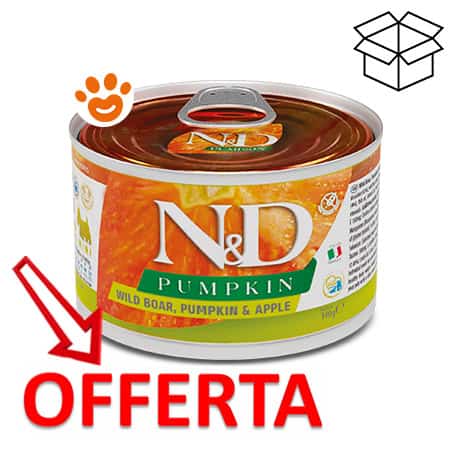Farmina Dog N&D Pumpkin Adult Mini Cinghiale, Zucca e Mela è un alimento completo per cani adulti.