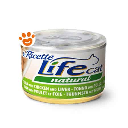 In un maxiformato da 150gr con tappo salva sprechi, si trovano trancetti di tonno della migliore qualità e filetti di vero petto di pollo, guarniti con fegatini. Il tutto cotto al vapore e conservato in brodo di cottura. Senza aggiunta di conservanti, additivi o coloranti. E’ un alimento ricco di proteine nobili, di preziosi acidi grassi essenziali omega 3 e povero di carboidrati, nel rispetto delle esigenze nutrizionali del gatto I fegatini di pollo apportano vitamine e minerali, oltre ad essere estremamente appetitosi.