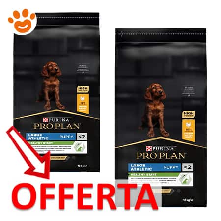 Purina pro plan large athletic puppy healthy start ricco in pollo è un alimento completo per cuccioli di taglia grande con una corporatura atletica. Adatto anche per cagne in gestazione e/o allattamento. Contiene colostro, che è dimostrato supporti la risposta immunitaria