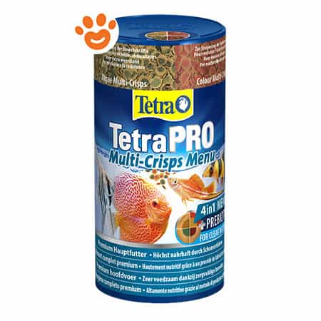 TetraPRO ha fissato un nuovo standard nella nutrizione dei pesci. TetraPRO Menu Multi-Crisps è un mangime completo di qualità superiore ottenuto tramite un processo di produzione delicato a bassa temperatura che conferisce al prodotto valori nutrizionali particolarmente elevati. Inoltre i multi-crisp assorbono meno acqua del normale mangime in fiocchi, cosa che fa aumentare l’apporto di nutrienti per volume di prodotto. Tutti i mangimi TetraPRO offrono anche un rapporto proteine-grassi ottimale, grazie al quale i pesci possono sfruttare i grassi per il movimento e le proteine per sviluppare, in particolar modo, la massa muscolare. TetraPRO Menu racchiude in un unico prodotto tutti i vantaggi dei vari multi-crisp: mentre il concentrato di energia presente in Energy Multi-Crisps migliora la vitalità, i Colour Multi-Crisps esaltano la colorazione naturale dei pesci. Allo stesso modo, gli Algae Multi-Crisps migliorano la resistenza e i Growth Multi-Crisps favoriscono la crescita sana. L’innovativa tecnologia a 2 colori riproduce visivamente i vantaggi aggiuntivi dei vari tipi di multi-crisp, che per giunta si sbriciolano molto meno dei normali fiocchi, riducendo notevolmente la quantità di residui di cibo che rimane nell’acqua sotto forma di polvere. I prebiotici di alta qualità stimolano in modo specifico la crescita e il metabolismo di batteri benefici nel tratto intestinale dei pesci, agendo come fonte di cibo preferita per i batteri utili. Tutto questo riduce al minimo l’intorbidimento dell’acqua.